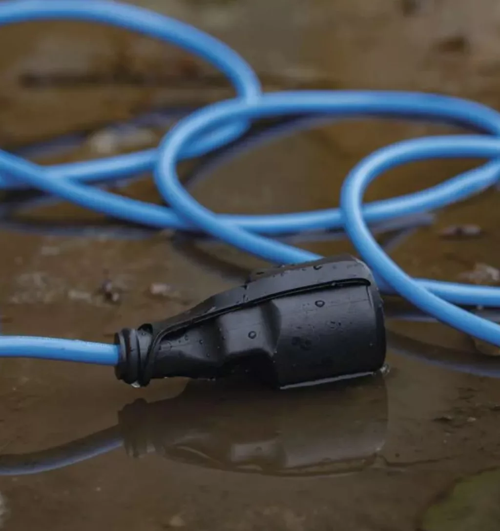 IP44-es védelemmel ellátva, így ellenáll az időjárás viszontagságainak, míg kék színe jobb láthatóságot biztosít.