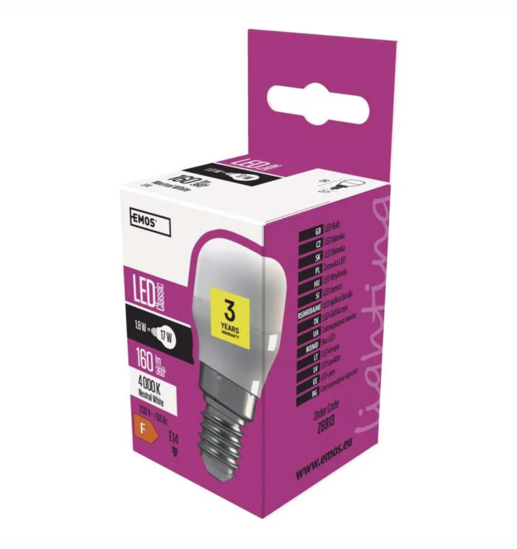 Hűtőszekrény E14 LED izzó – 1.8W, természetes fehér fény 4000K