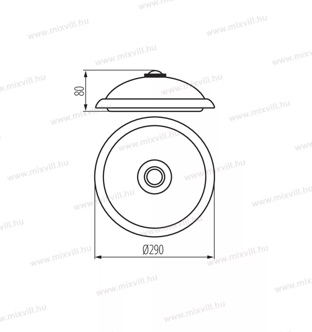 - Méretek: Magasság 80mm, Átmérő 290mm