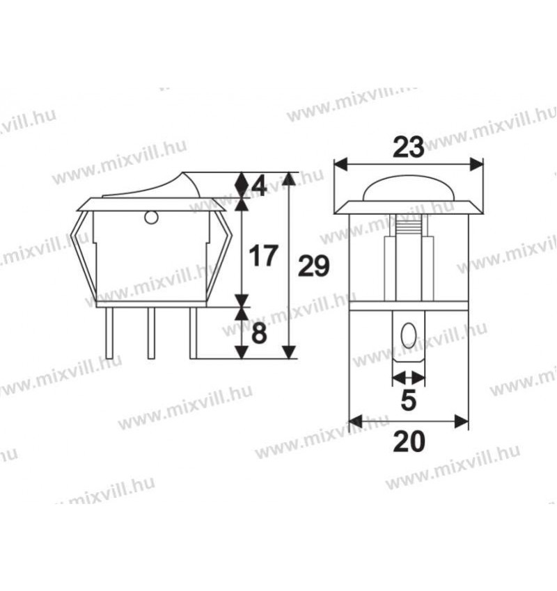 A kapcsoló a kivágási kerek furatba egyszerű mozdulattal bepattintható, szabványos csatlakozókapcsaira lapos rátolható csatlakozóhüvelyekkel ellátott vezetékeket lehet csatlakoztatni.
