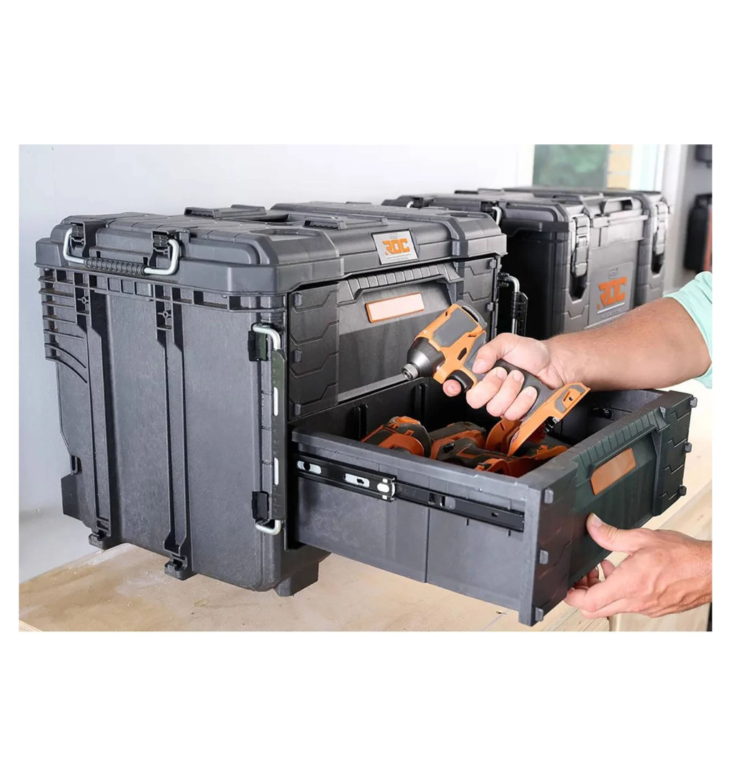 Az XL 2 fiókos egység a Pro Gear moduláris rendszer alapját képezheti, és teljesen kompatibilis mind a Pro Gear System 2.0, mind az 1.0 verzióival. Ezen funkciók révén a termék sokoldalú és praktikus megoldást kínál a szerszámok tárolására és szállítására, ami ideális választás bármilyen munkakörnyezetben.