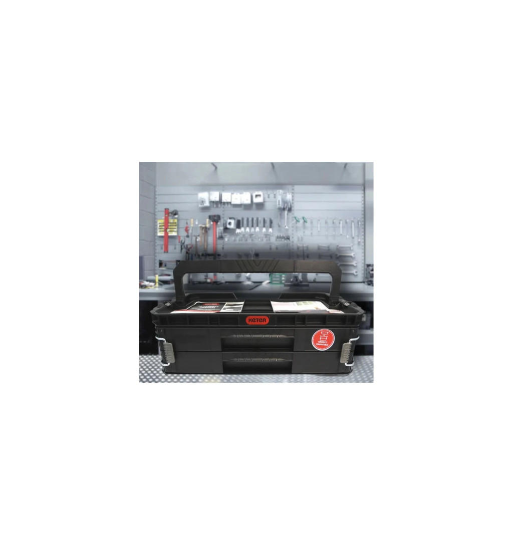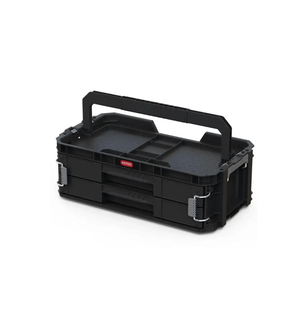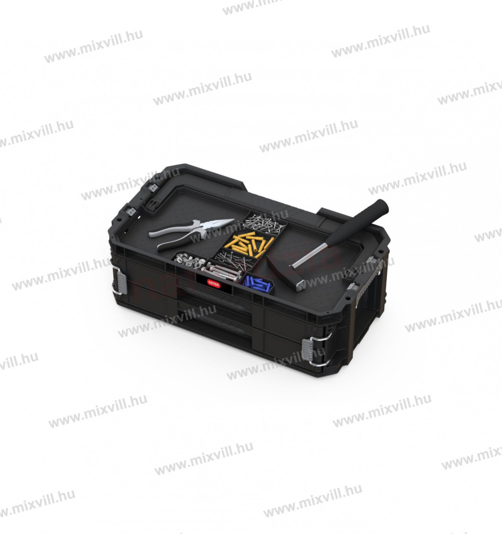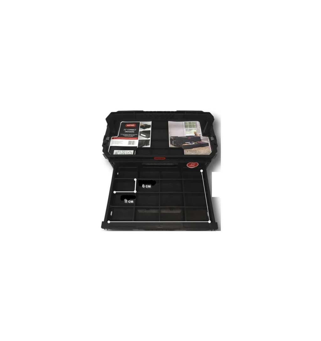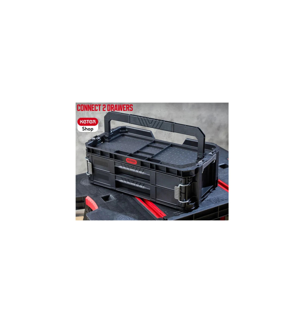 A Connect műanyag szerszámtartó két tágas, kihúzható fiókból áll.