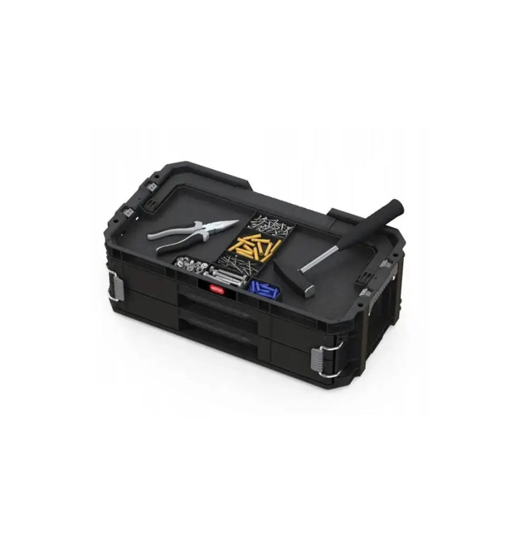 A Keter Connect sys 2 szerszámosláda a legjobb minőségű anyagból készült, amelyet nagy tartósság és mechanikai sérülésekkel szembeni ellenállás jellemez.