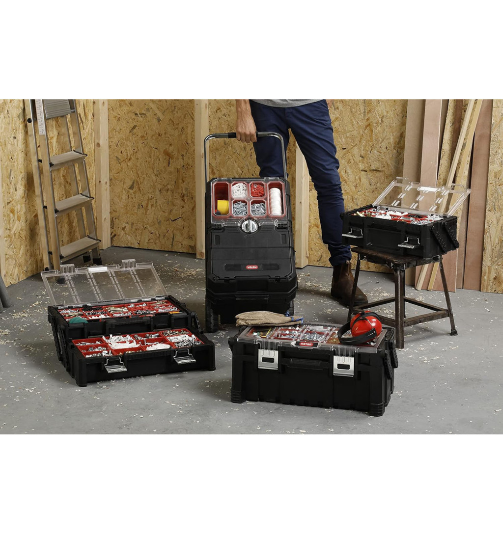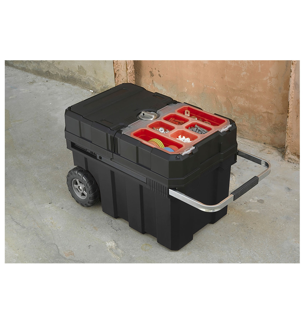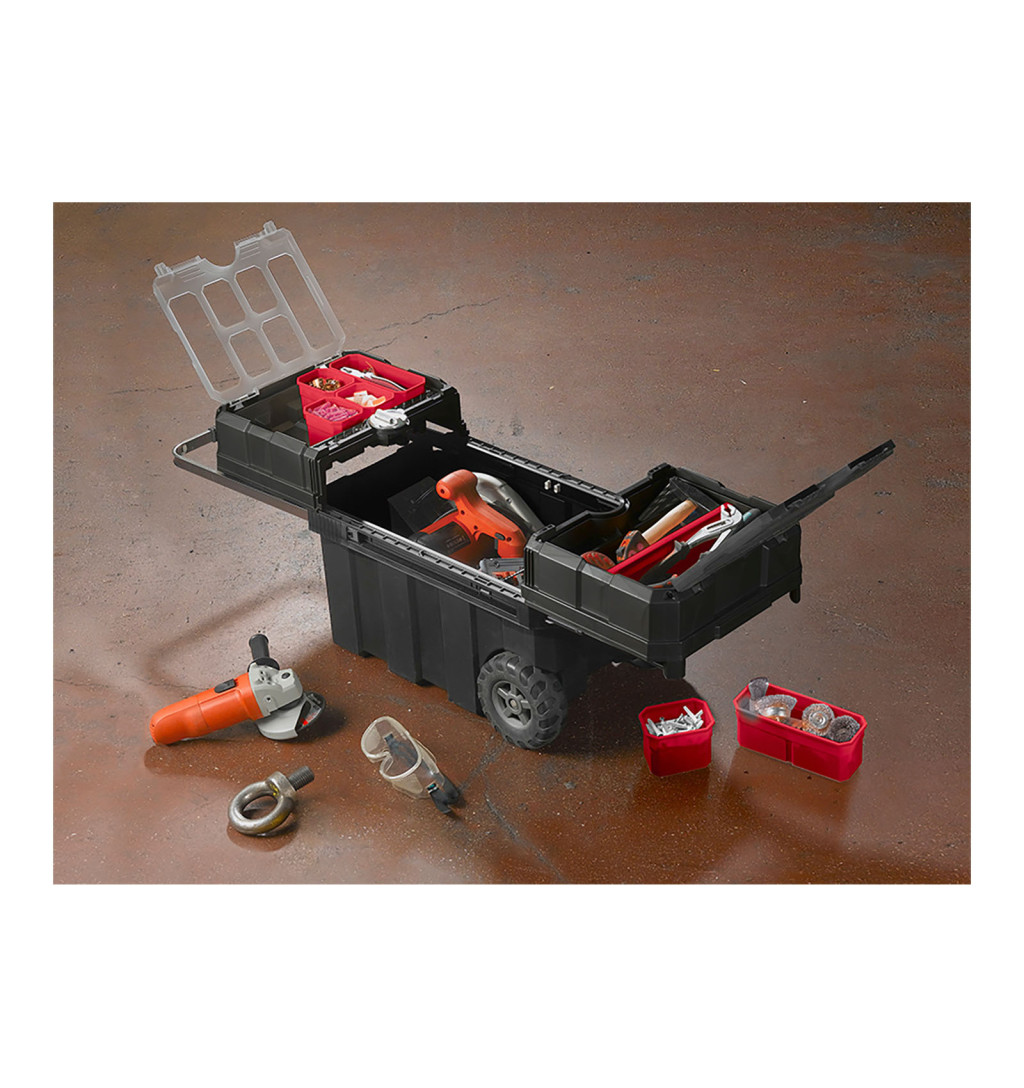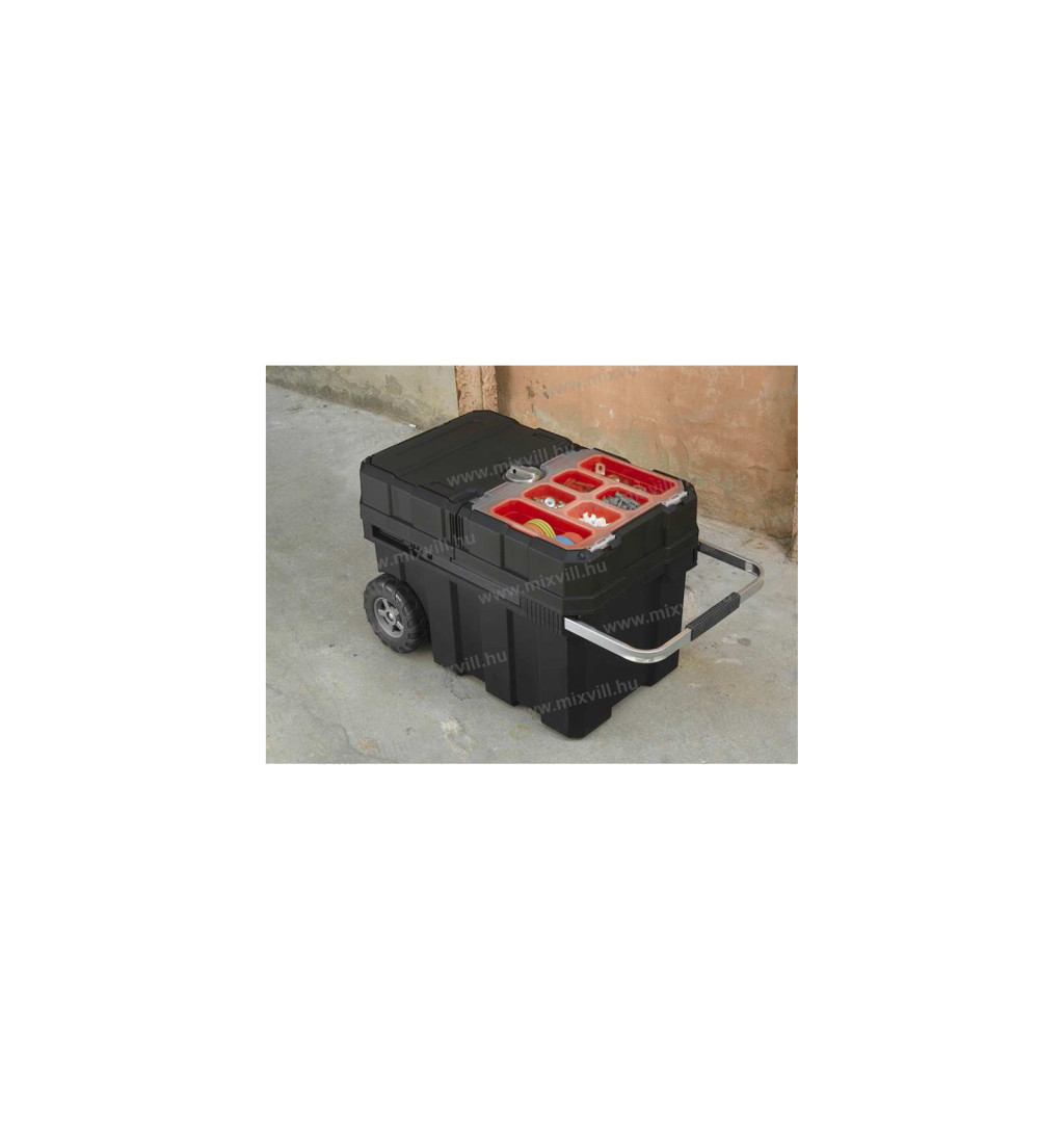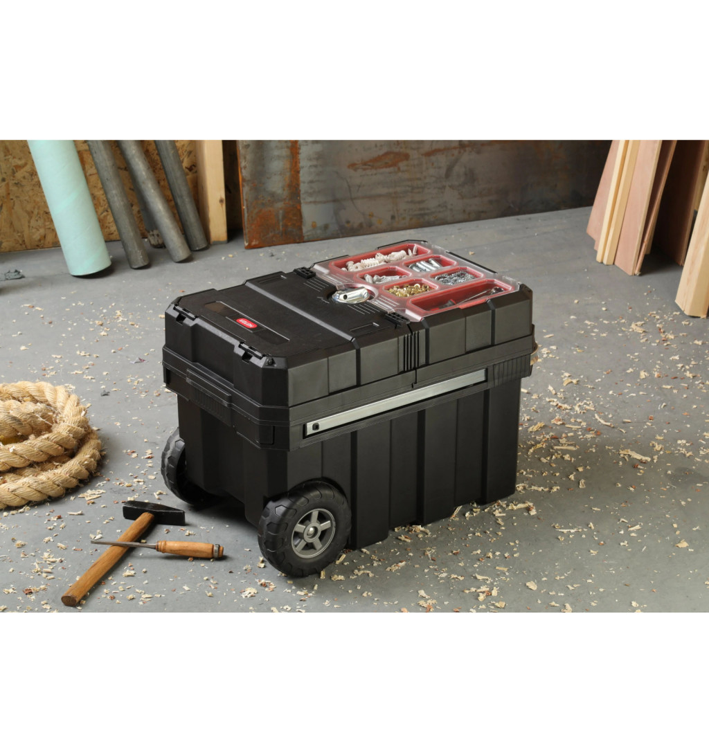 A szerszámosládán a fogantyú, illetve a strapabíró kerekek, amely tartozékok, hozzájárulnak a nagyfokú mobilitáshoz. A szerszámosláda tartós, kiváló minőségű műanyagból készül, amely biztosítja a szerszámosláda stabilitását, tartósságot és a mechanikus sérülésekkel szembeni ellenállóképességét. Így a használat közbeni mechanikus erőhatások nem okoznak kárt a szerkezetben. Hosszú évek után is olyan, mintha újonnan került volna használatba, a háztartásba, garázsba, műhelybe.