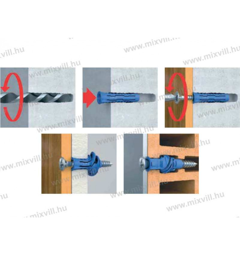• A forgásgátló fülek széles körben segítik a tapadást, beleértve a puha falazóanyagokat is