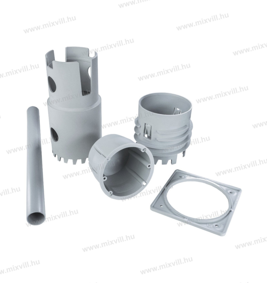 Minimum 80mm vastag hőszigetelésbe utólag rögzíthető doboz készlet. Alkalmas polisztirol és kőzetgyapot szigetelésekbe is. Már befejezett szigetelésbe is rögzíthető.