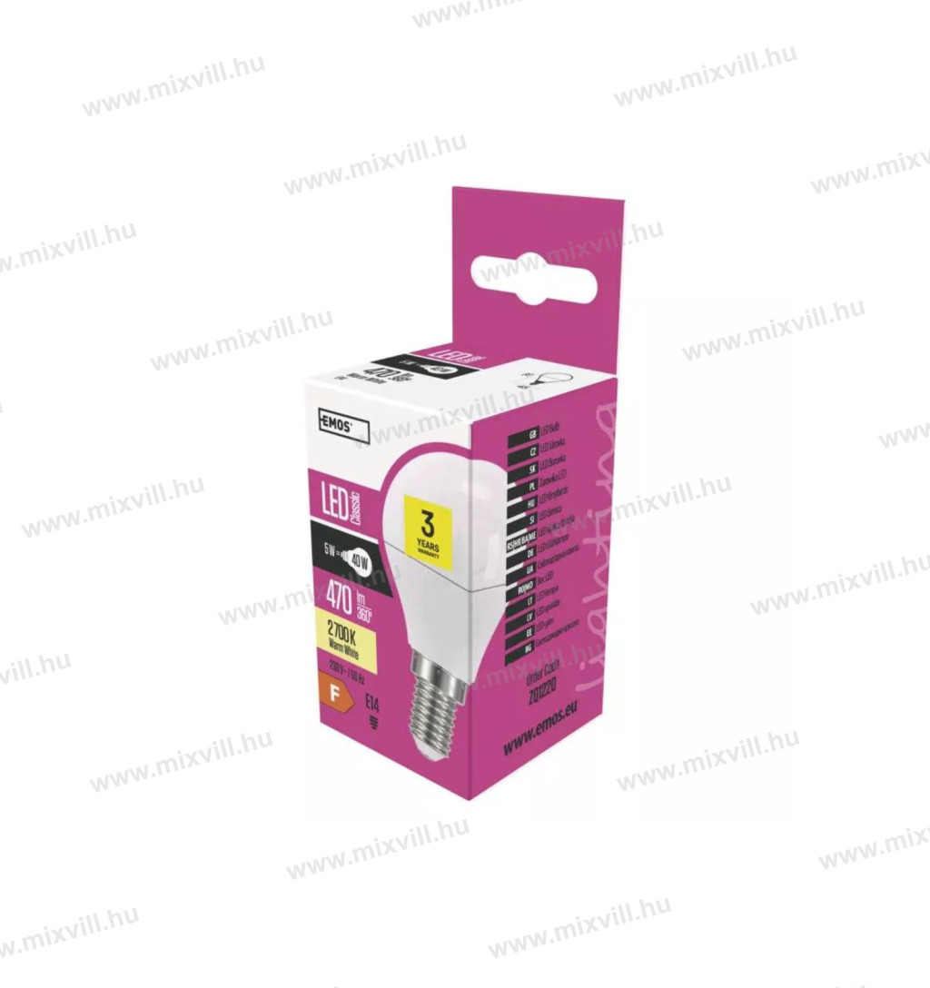 LED izzó E14 4,1W 350lm kisgömb 2700K meleg fehér ZQ1210 EMOS 3 év garancia