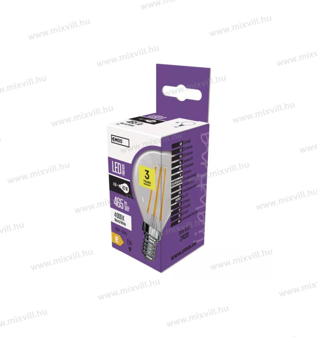Led izzó E14 kisgömb 4W 465lm 4000K 360° vil.szög 3 év garancia Z74231 EMOS