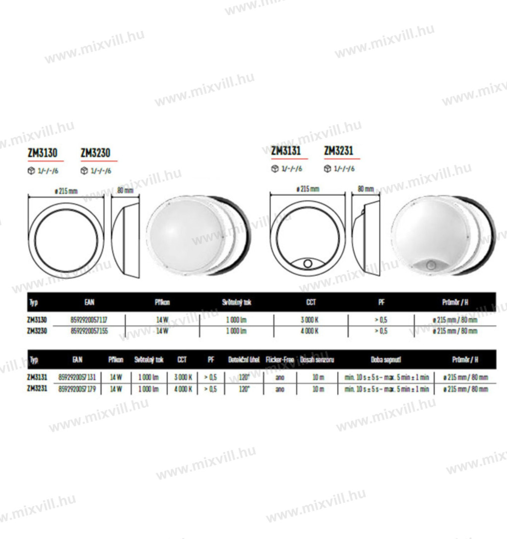 - Fogyasztás: 14 W