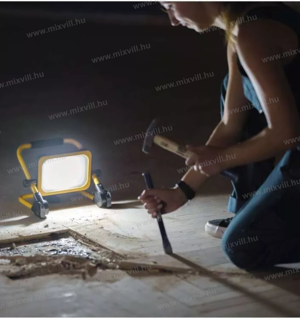 A 120°-os LED-es reflektor robusztus kialakításának köszönhetően zord környezetben való munkavégzésre is alkalmas. Azonban nem csak az építkezésekenmunkahelyek megvilágításánál hasznos, hanem családi házakban, garázsokban vagy műhelyekben végzett munkáknál is jól jön. Minden bizonnyal nagyszerű és tárolható társ lesz még kempingezéskor is. A reflektor praktikus tulajdonsága a háromfokozatú fényerőszabályozás, a fény 100%, 50% és 25%-on világít.