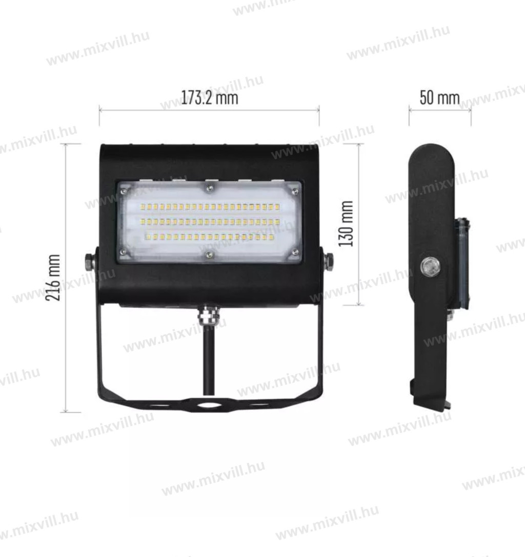 - Fogyasztás: 30 W megfelel 300W teljesítményű hagyományos reflektornak