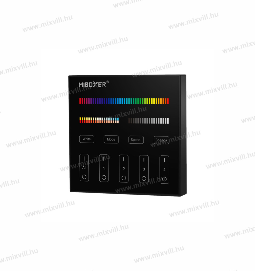 MiBoxer B4B 4 zónás paneles fekete távirányító, mágneses rögzítés (DIM+RGB+CCT)