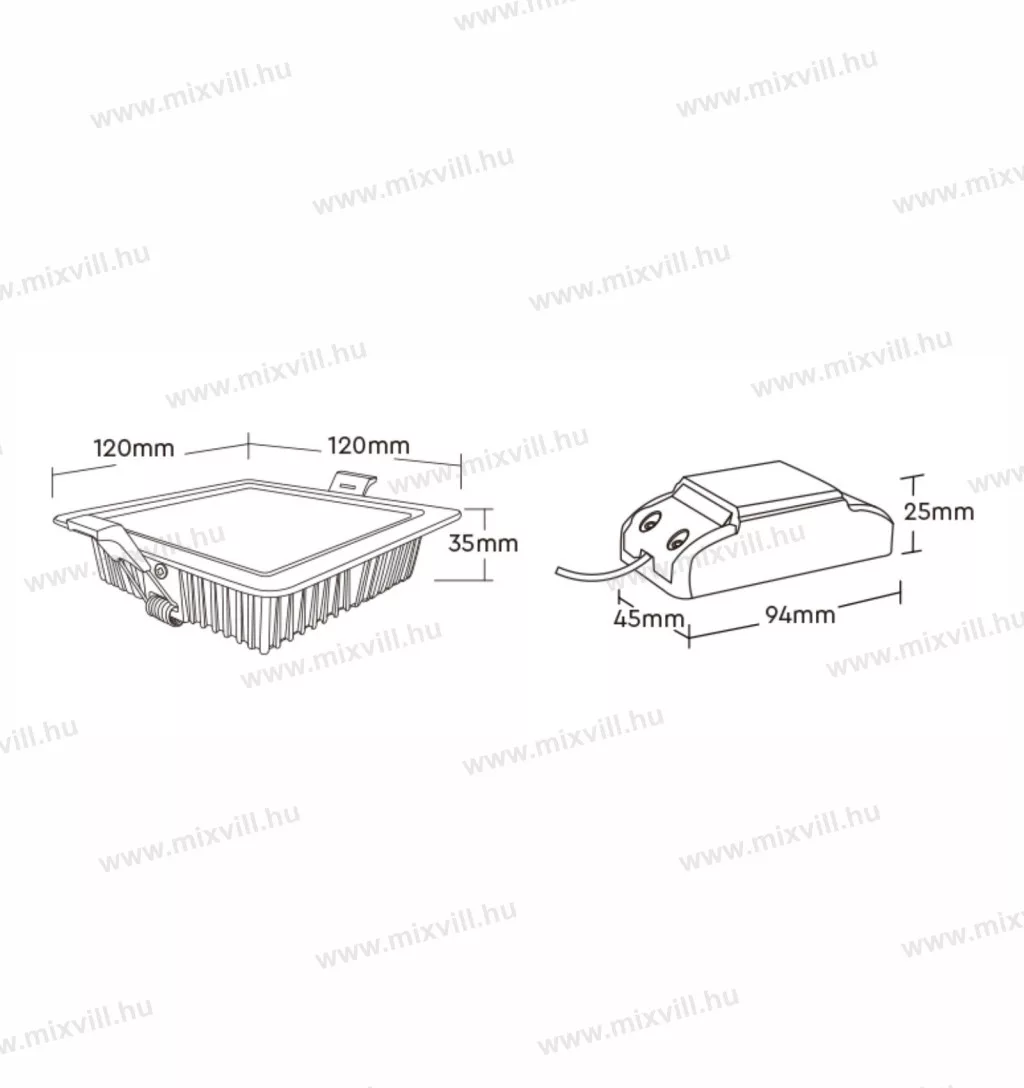 - Beépítési méret: 105x105mm