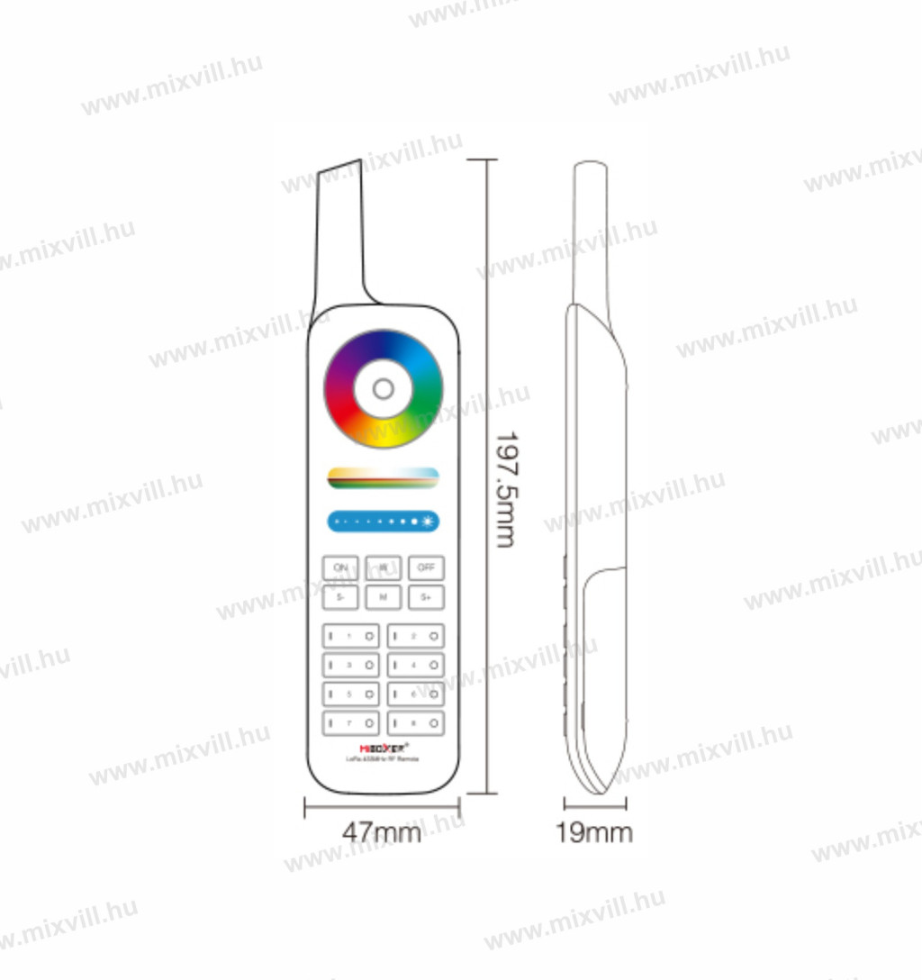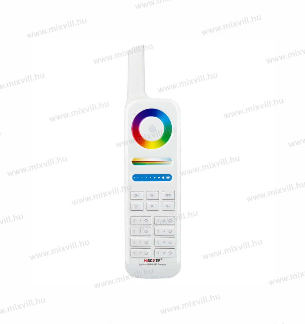 • Szabályozhatja a MiBoxer LoRa 433 sorozatú lámpák be- és kikapcsolását, az RGB színt, a színhőmérséklet telítettségét és fényerejét