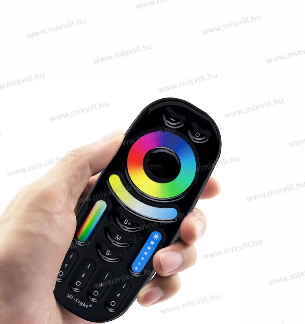 4 zónás RGB+CCT (a színes és a fehér fény színhőmérsékleteinek beállítása) távirányító