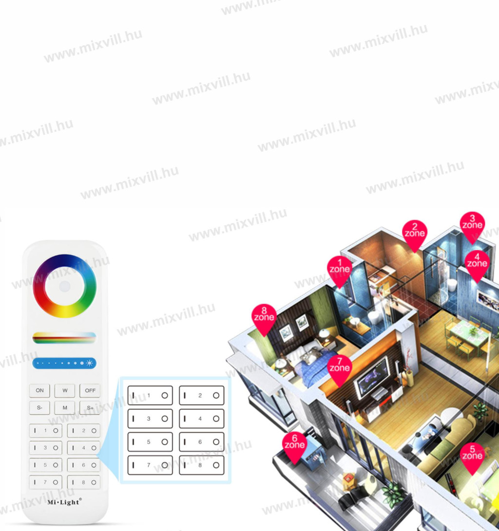 MiBoxer Group Control RGB+CCT LED csoport (8 zóna) fehér távirányító full color FUT089