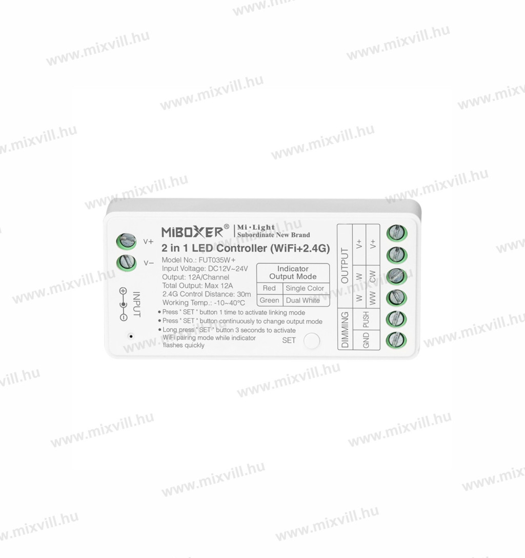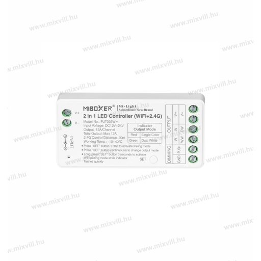 MiBoxer Group Control 2 az 1-ben LED szalagvezérlő (WiFi+2,4G) CCT 12-24V 144/288W 12A FUT035W+