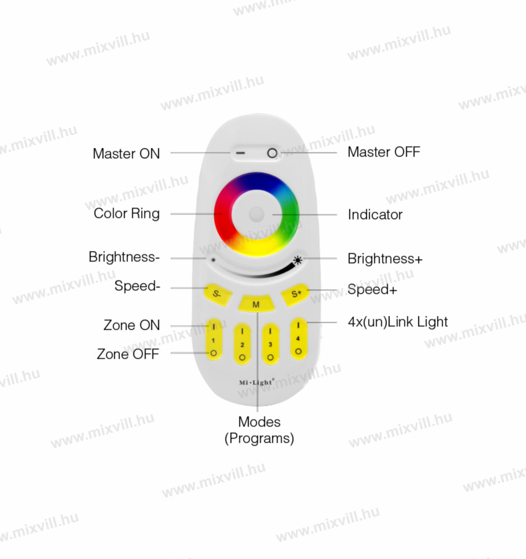 MiBoxer Group Control RGBW LED csoport (4 zóna) zóna vezérlő fehér távirányító FUT096