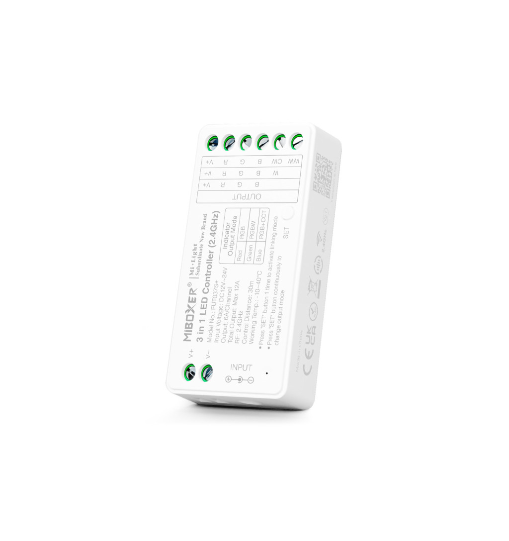 • Kompatibilis a Mi-Light / MiBoxer 2,4 GHz-es sorozatú távirányítóval