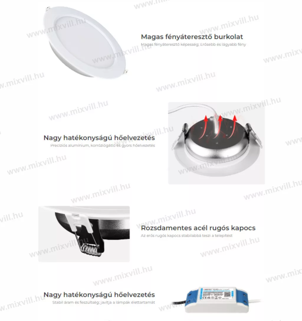 - Beépítési méret: lyuk átmérő 145 ~ 150 mm