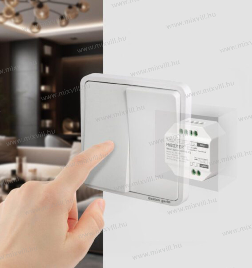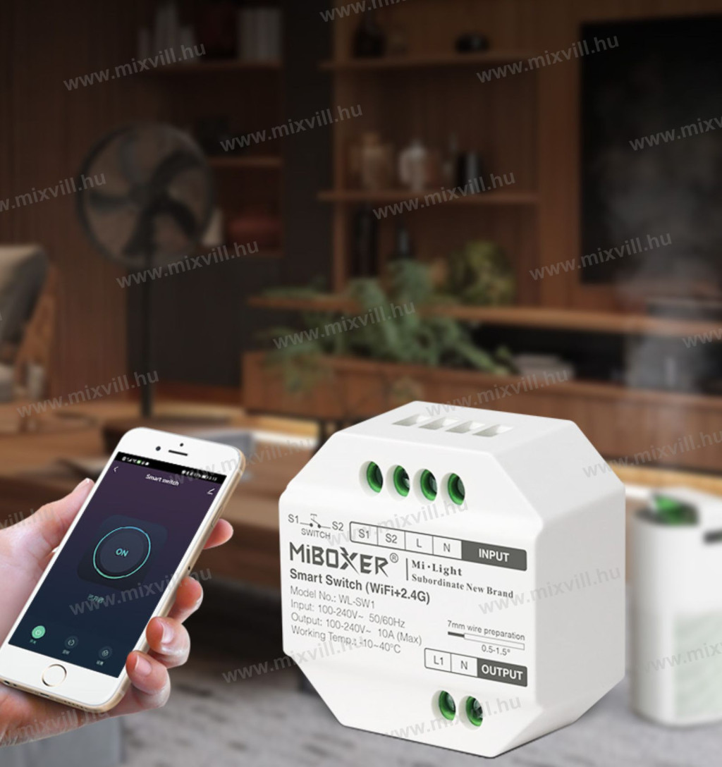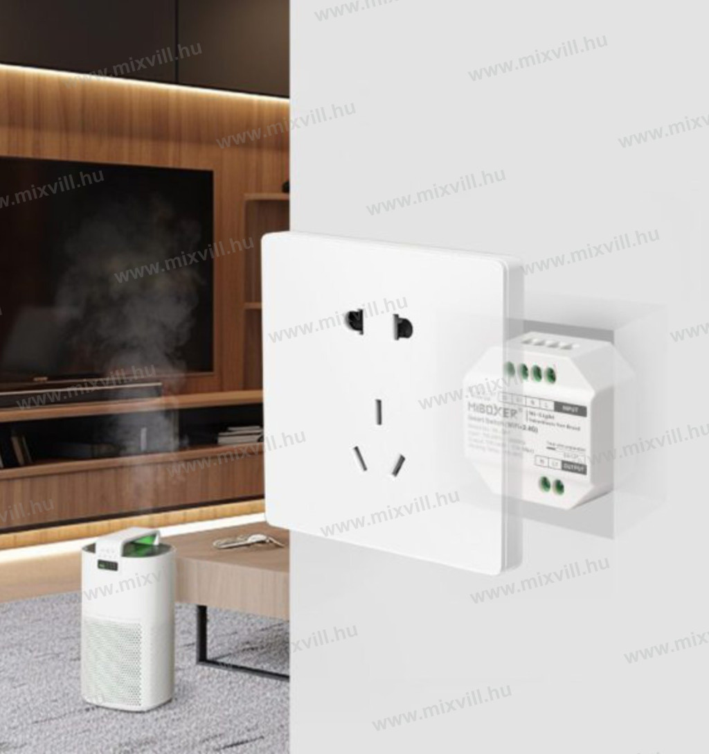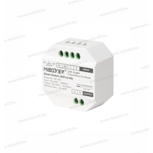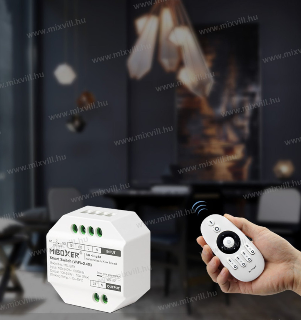 WL-SW1 Smart Switch WiFi+2,4G RF kapcsoló Mi-Light / MiBoxer alkalmas 230V-os készülékek kapcsolására, amely WiFi jelen keresztül kommunikál a TUYA protokoll szerint. A kapcsoló csak ki- és bekapcsolja a készüléket!