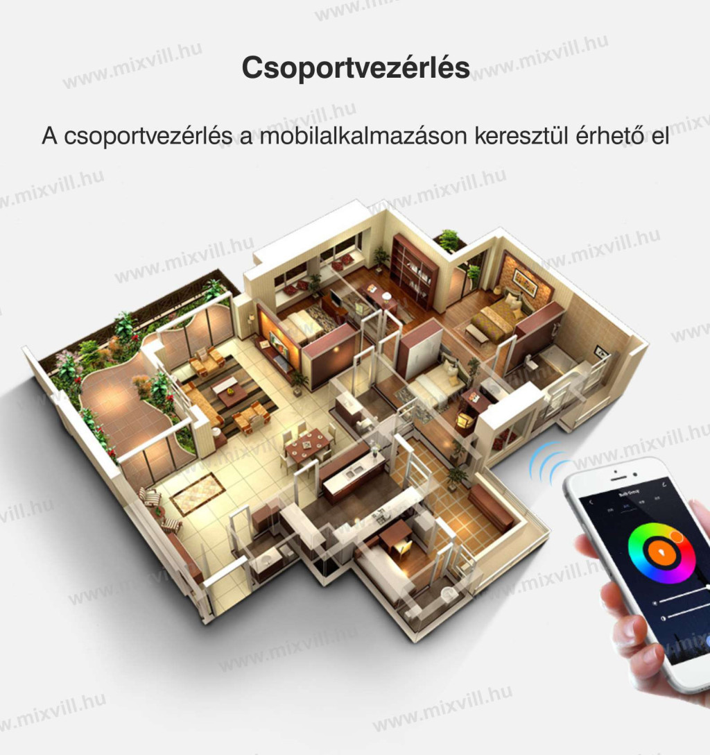 - A csoportvezérlés a mobilalkalmazáson keresztül érhető el