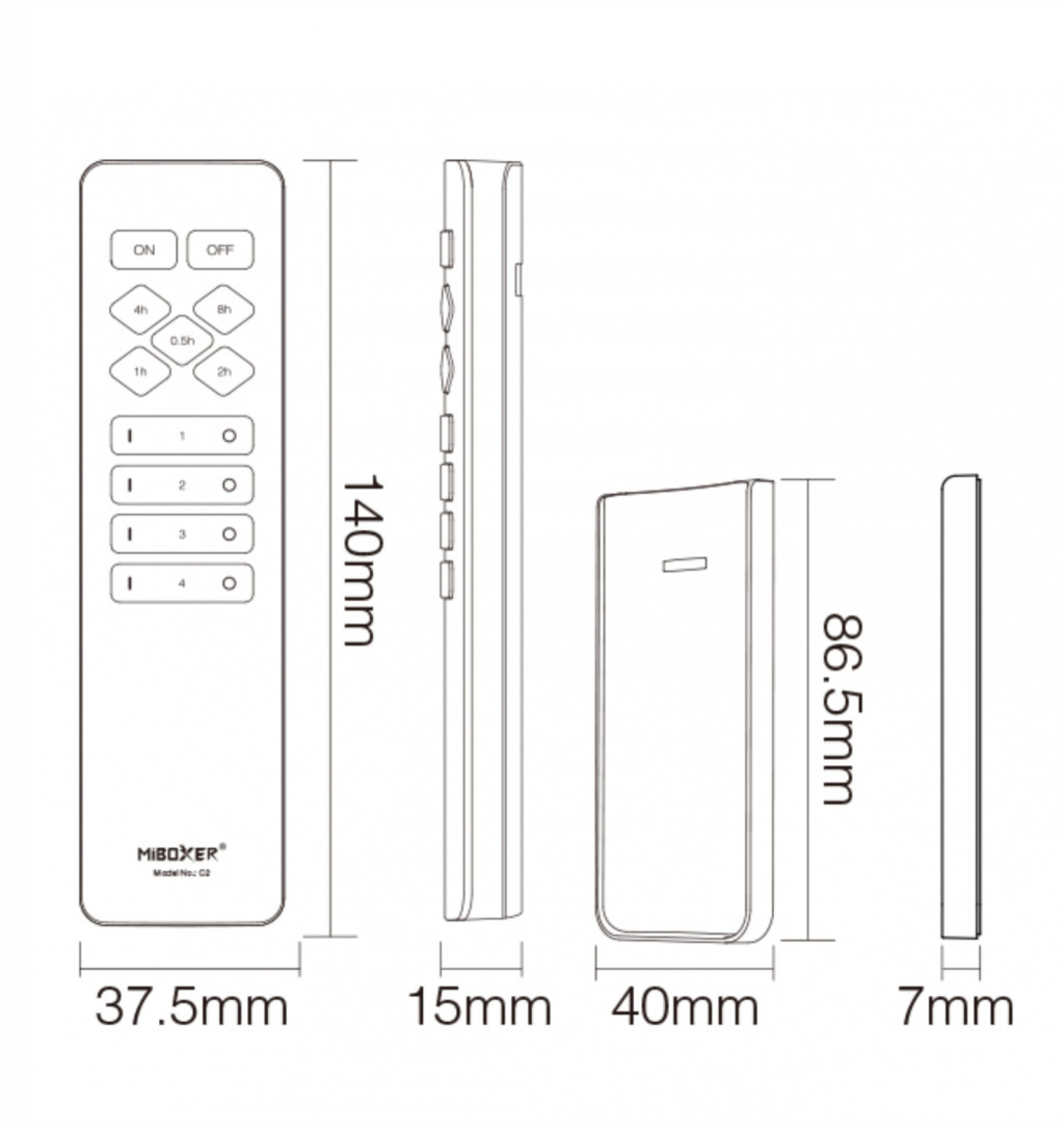 A MiBoxer C2 egy 2.4GHz RF vezeték nélküli távirányító, amely kompatibilis a V3.0 Smart Plug & Switch termékekkel. Támogatja a négy független vezérlési zónát, erős mágneses alappal rendelkezik, és kényelmes vibrációs visszacsatolást biztosít.