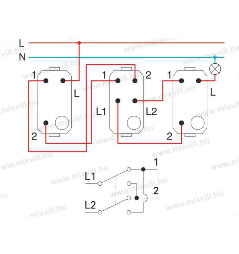 Keresztkapcsoló: klasszikus váltó (alternatív) kapcsolást lehet vele kiegészíteni. Amikor nem csak két helyről akarunk ki-be kapcsolni fogyasztót (-kat), akkor a keresztkapcsolóval ki lehet bővíteni korlátlan számú kapcsolási helyre.
