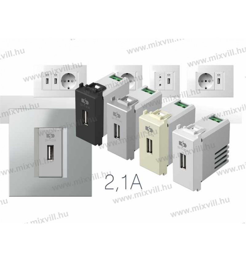 MODUL 1M USB töltő aljzat 5V 2,1A fekete EM66SB(38159) kif.
