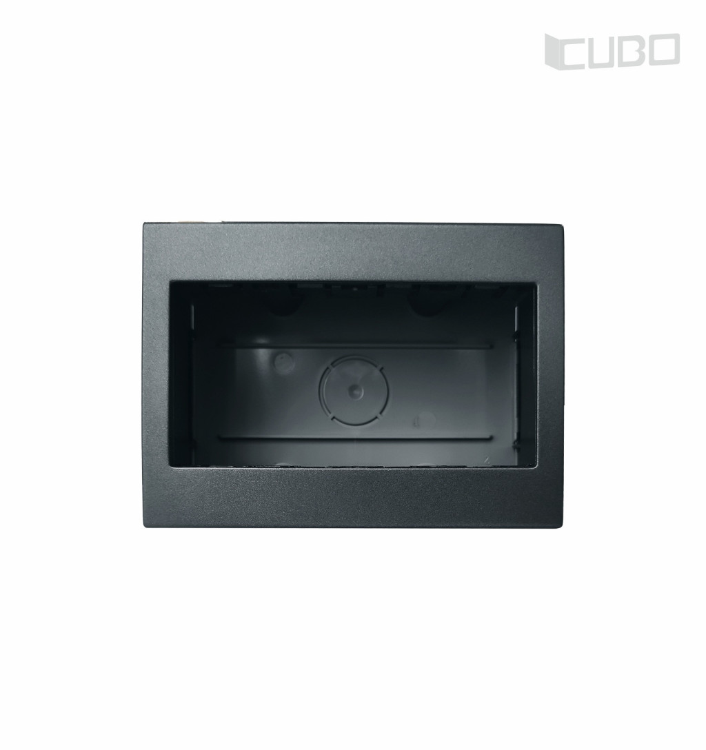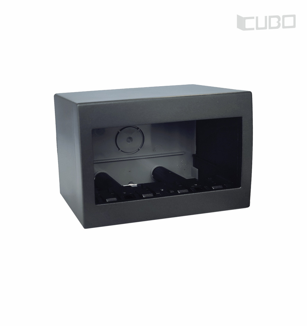 Modul Cubo falon kívüli doboz antracit színben A Modul Cubo termékcsalád falon kívüli dobozai a könnyebb szerelhetőség érdekében hátfallal vannak ellátva.