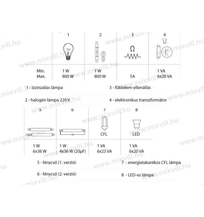 • Tápfeszültség: 230 V~ ± 10% 50 Hz