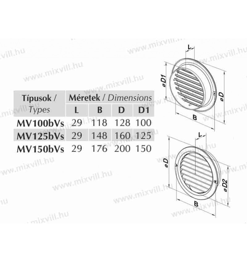 MV 100bVs Szellőzőrács Đ100mm kétoldalú rács szúnyoghálóval