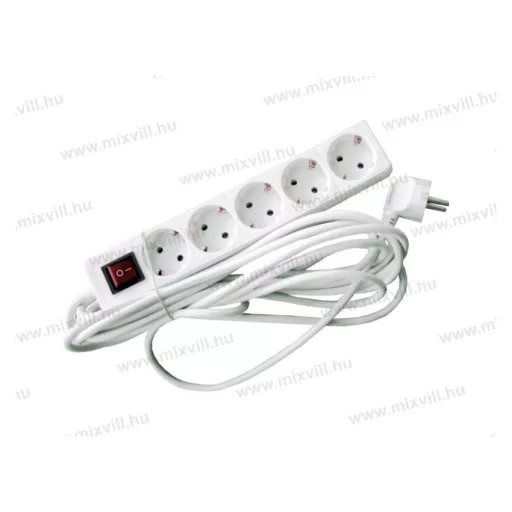 • MXHS-05/5K 5m 3x1,5mm2 vezeték, 5 foglalat, kapcsolóval, Imax: 16A