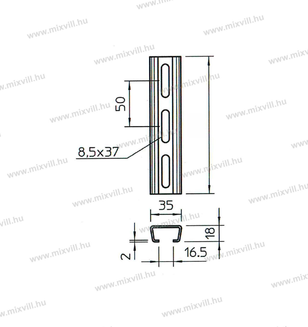 OMU C-profil sín perforált 35x18x2mm nyílásszélesség 16,5mm tűzihorganyzott acél 2m/szál