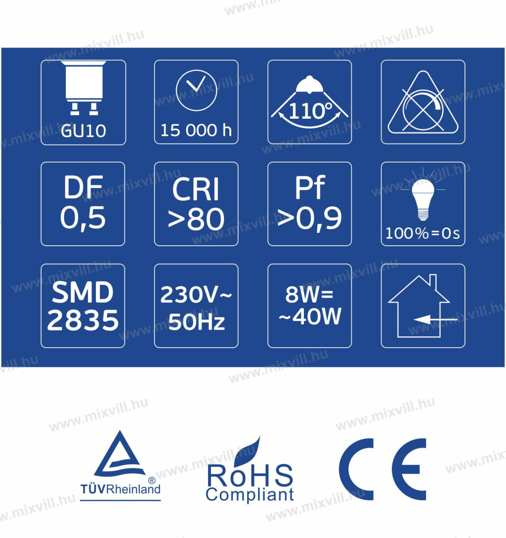OMU Lighting LB LED izzó GU10 spot 8W 806lm 3000K meleg fehér 2 év garancia LBGU108.08063000