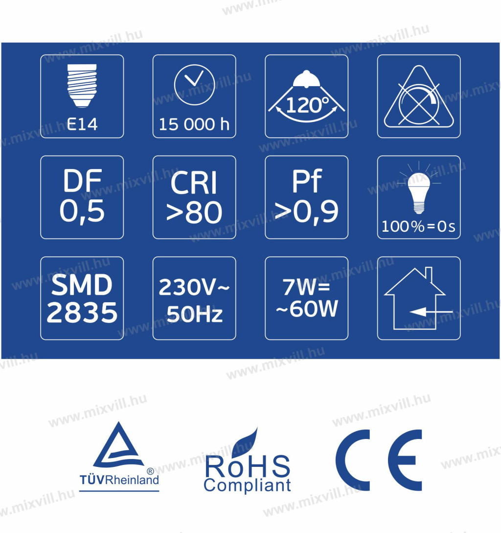 OMU Lighting LED izzó E14 G45 7W 600lm 6500K hideg fehér garancia 2 év LBE14G457.06006500