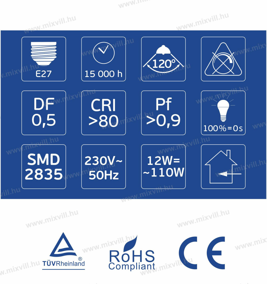 OMU Lighting LED izzó E27 A60 12W 1440lm 6500K hideg fehér emelt fényerejű garancia 3 év