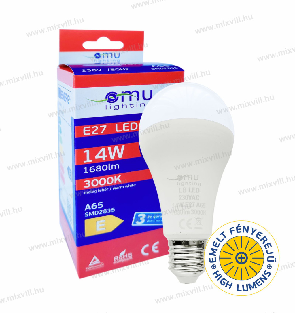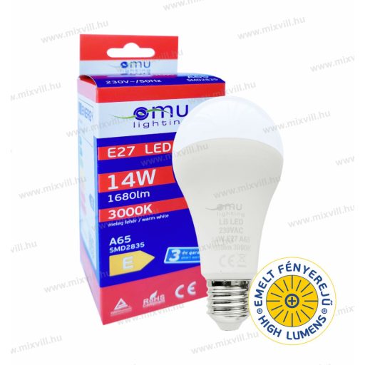 OMU Lighting LED izzó E27 A65 14W 1680lm 3000K meleg fehér garancia 3 év LBE27A651416803000