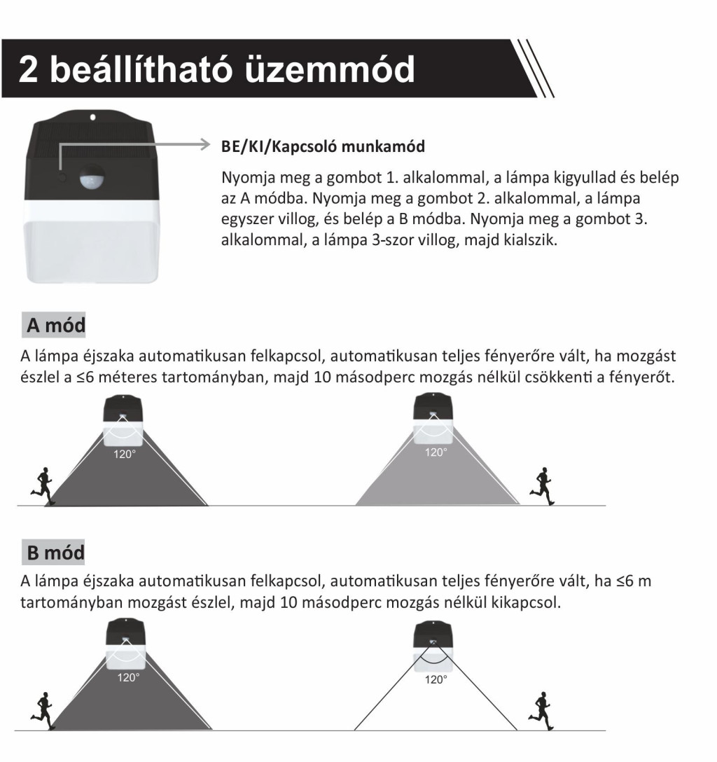 - Mozgásérzékelő érzékelési szög: 120°
