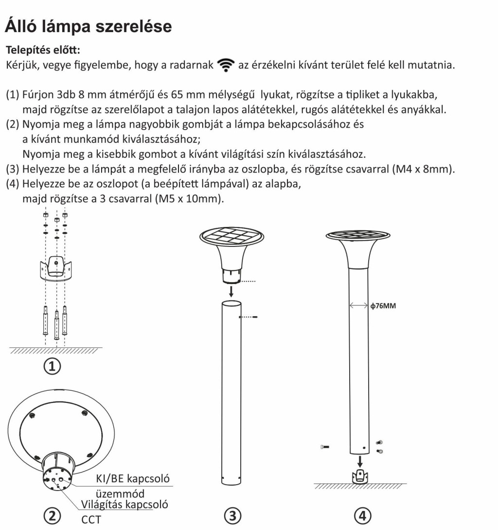 - Méretek: 257 x 257 x 879,7 mm – kompakt és stabil méret, amely ideális állólámpaként funkcionál kültéri környezetben.