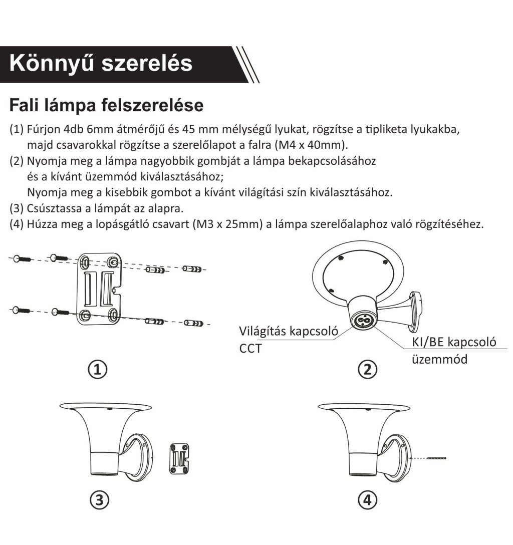Kétféle színhőmérséklet (CCT): A lámpa kétféle színhőmérsékletet kínál (4000K és 6000K), így lehetőség van a melegebb, semlegesebb vagy hideg fehér fény kiválasztására az igényektől függően.
