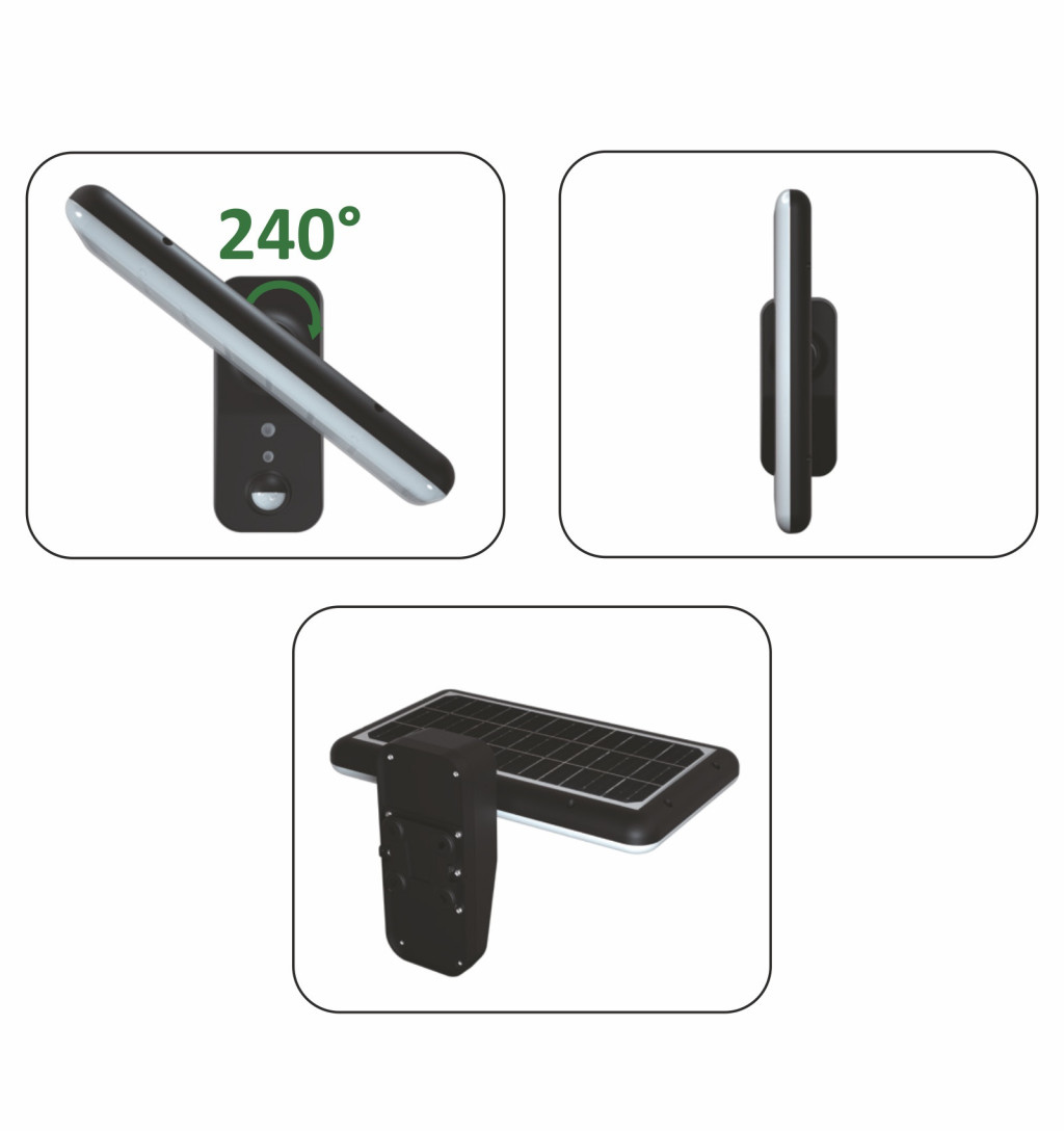 Állítható fényirány: A lámpa 240°-ban állítható fényirányt kínál, amely lehetővé teszi, hogy pontosan a kívánt területre irányítsa a fényt, így nagyobb rugalmasságot biztosít a világítás beállításában.