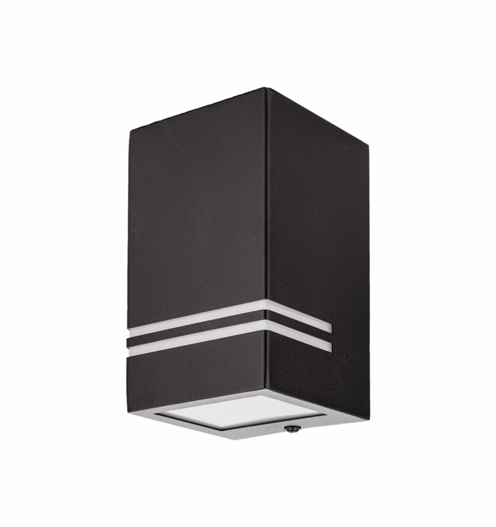 Az OMU Lighting SPK-GU10-IP44-S1-F egy modern, letisztult kültéri fali lámpatest, amely szögletes kialakításával és lefelé irányított fényével tökéletes megoldás homlokzatok, teraszok és bejáratok megvilágítására.