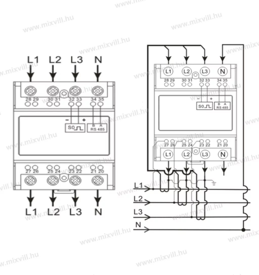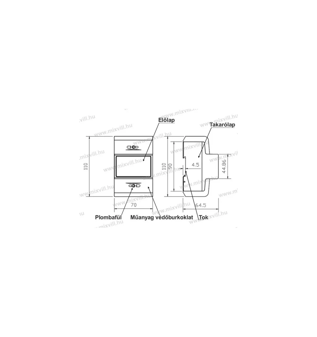 • Beiktatási teljesítmény (S1): <0,01VA (fázisonként az ÁV felőli bemeneten rövidzár van, melyen egy ferritgyűrű található, amire van kötve maga a fogyasztásmérő. Tehát a vezetékméretezésnél a vezeték fajlagos ellenállásával, hosszával és keresztmetszetével kell számolni, hogy a működési áramtartományon belül maradjunk, és a mérés pontos legyen: