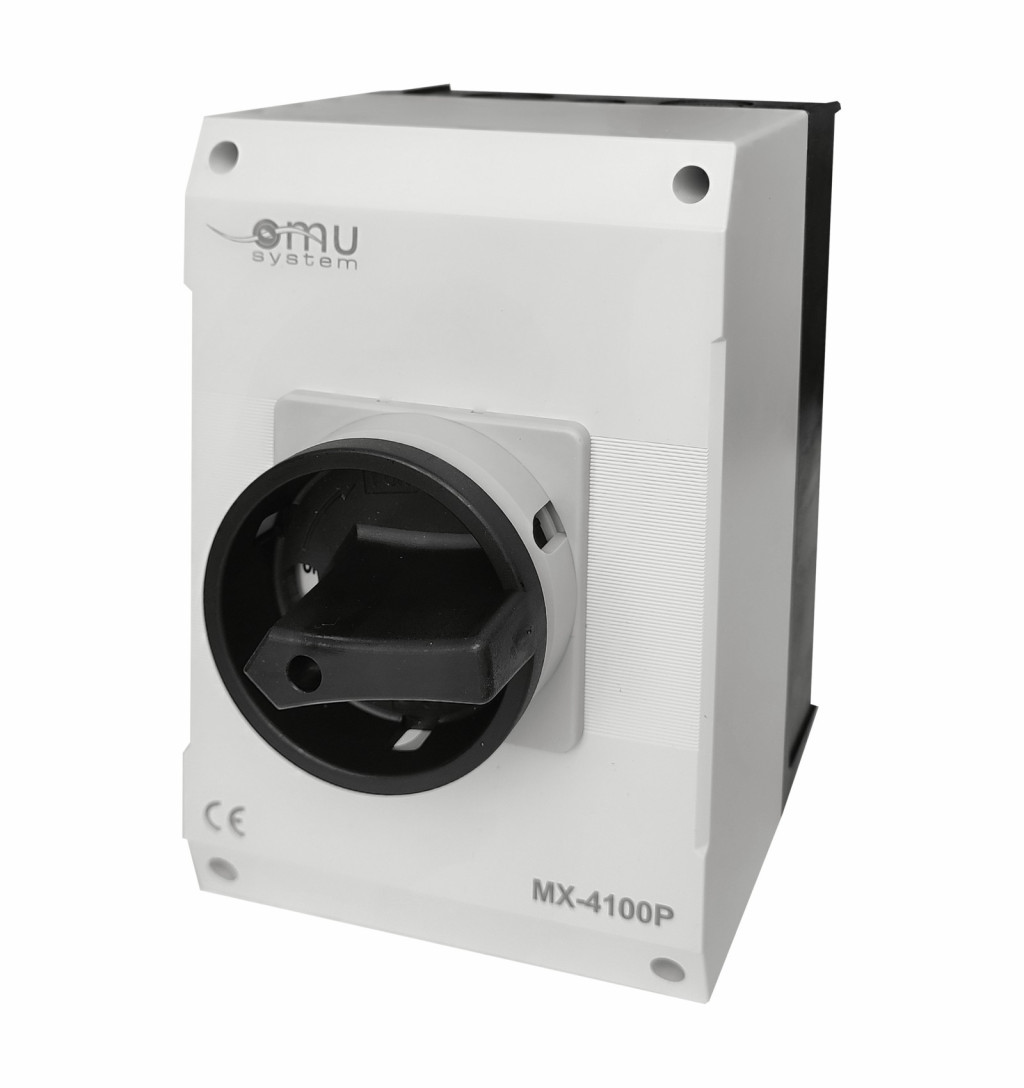 OMU MX-4100P 4 pólusú 100A tokozott ipari ki-be kapcsoló 4x100A IP65 forgócsapos lakatolható