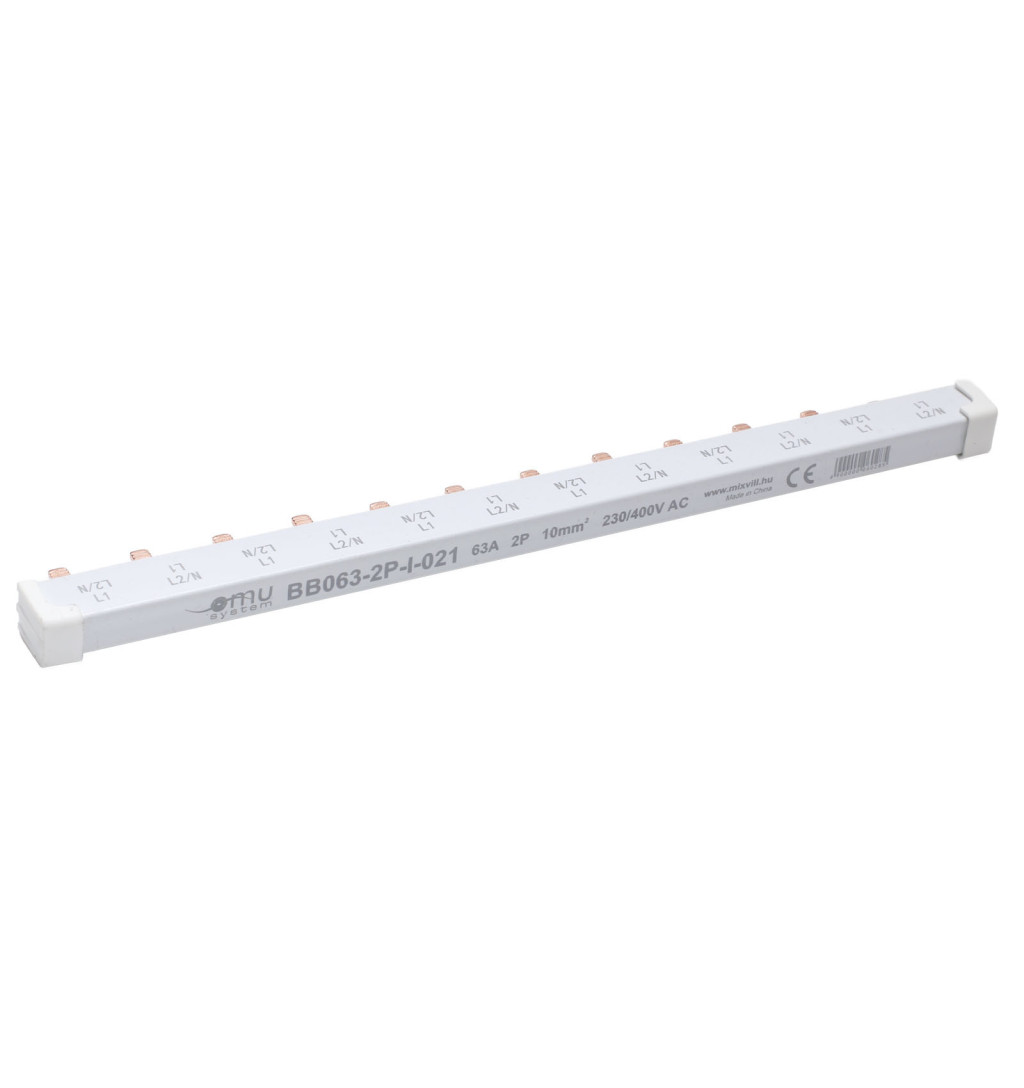 2 pólusú tüskés fésűsín 63A 12 modul, szigetelt