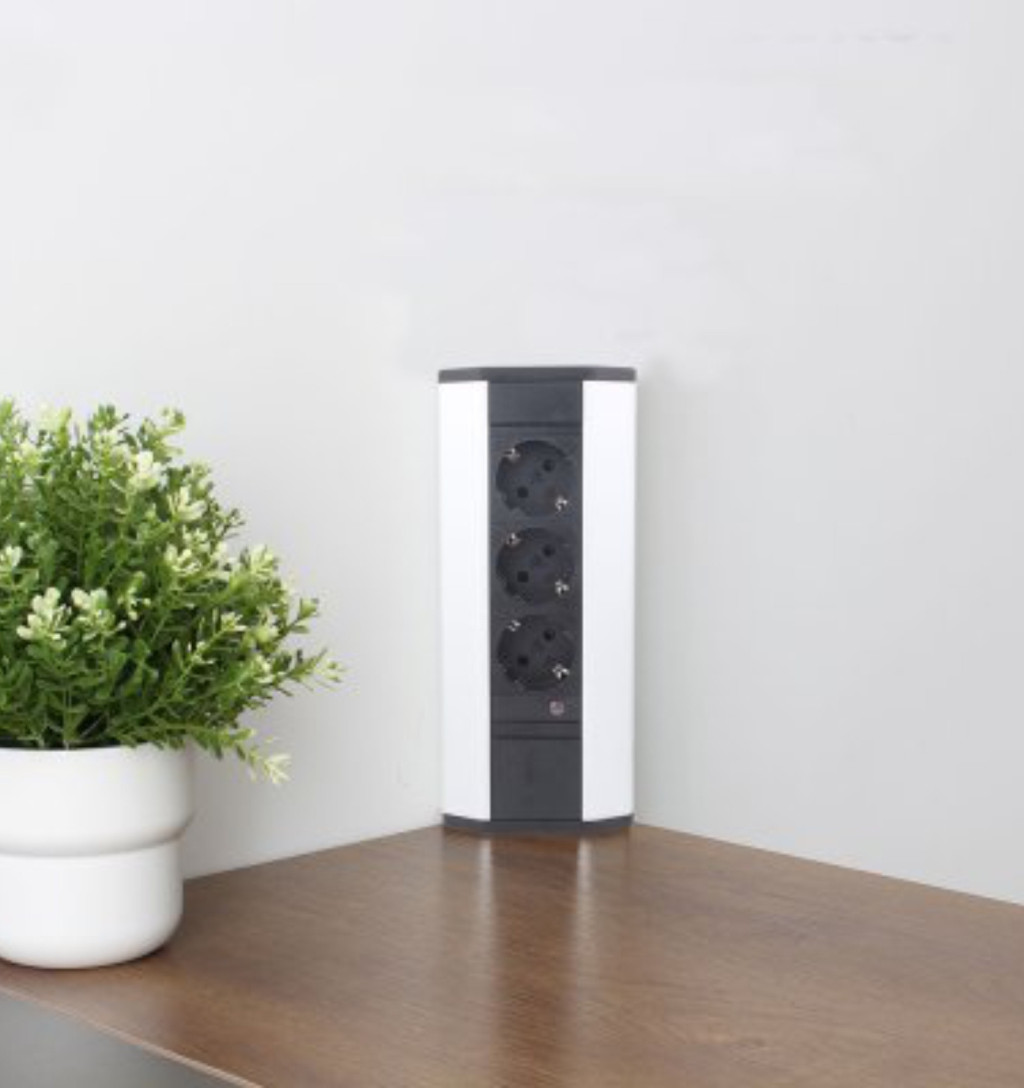 Helytakarékos felületre szerelhető sarokcsatlakozó ideális konyhai aljzatként a munkalapon, konyhapulton vagy asztalon, vagy bárhol, ahol több eszközt kell egyszerre csatlakoztatni.