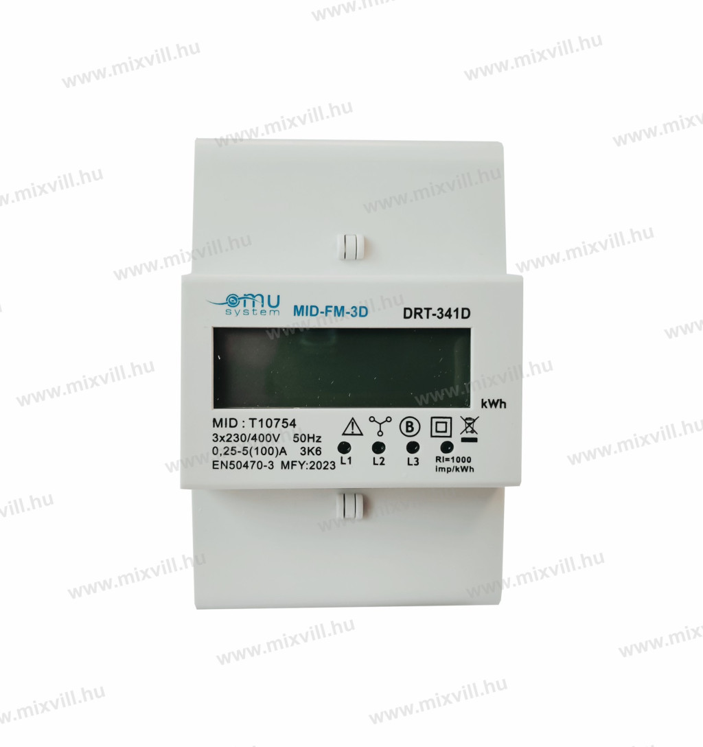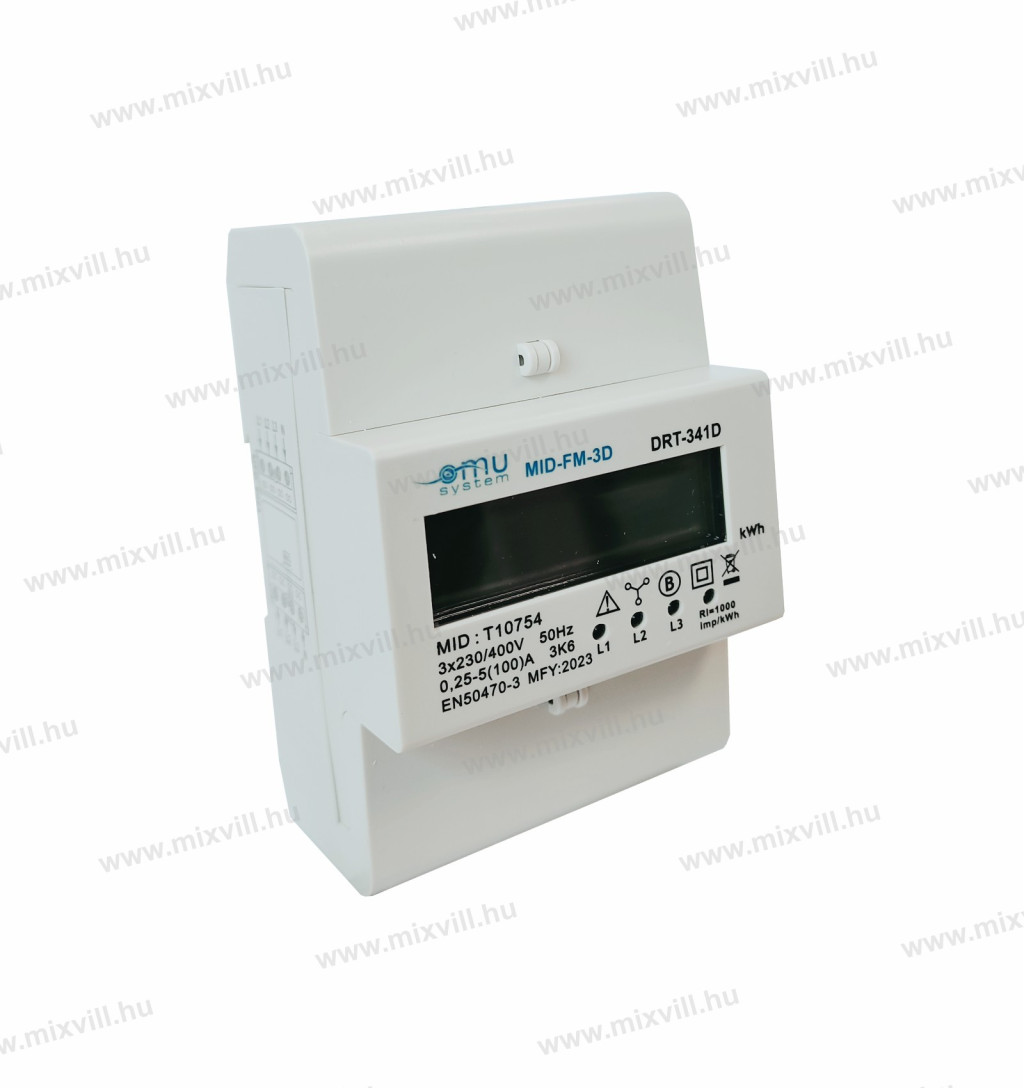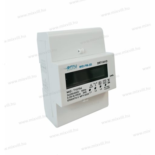 OMU system MID-FM-3D 3x100A digitális hitelesített fogyasztásmérő 3 fázisú direkt 4 modulos 1000 imp.