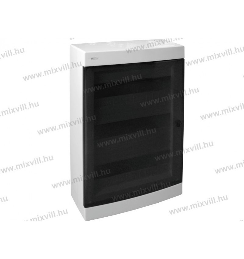 - Fehér, ABS anyagú alj és füstszínű, PC anyagú ajtó