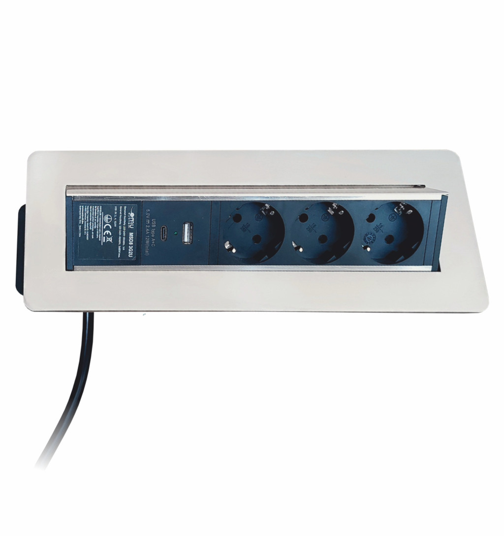 Az OMU System bútorba süllyeszthető elosztó modern és elegáns megoldás otthoni és irodai használatra. 3 aljzat és USB A+C csatlakozóval rendelkezik, így tökéletes konyhákba, irodákba és munkaállomásokra.